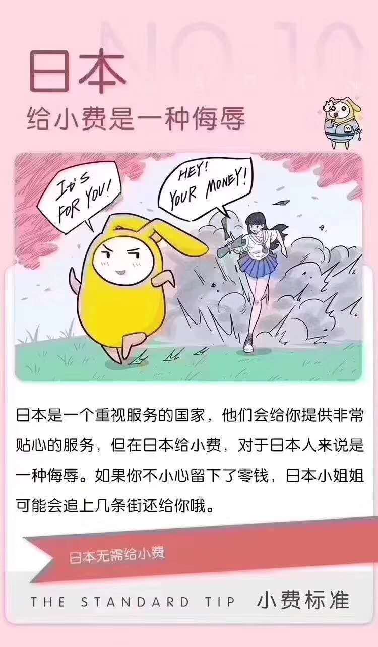 和中國一樣,在日本也不需要付小費。小費被認為是一種侮辱,所以一定要牢記避免任何場(chǎng)合的小費。
